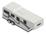 Spacious uncovered parking area suitable for large boats, fifth-wheels, or Class A motorhomes up to 40 feet. Gravel pad with drive-through access where available.